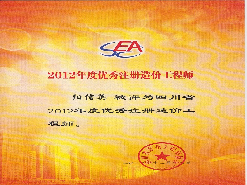阳信英 2012年度优秀造价工程师