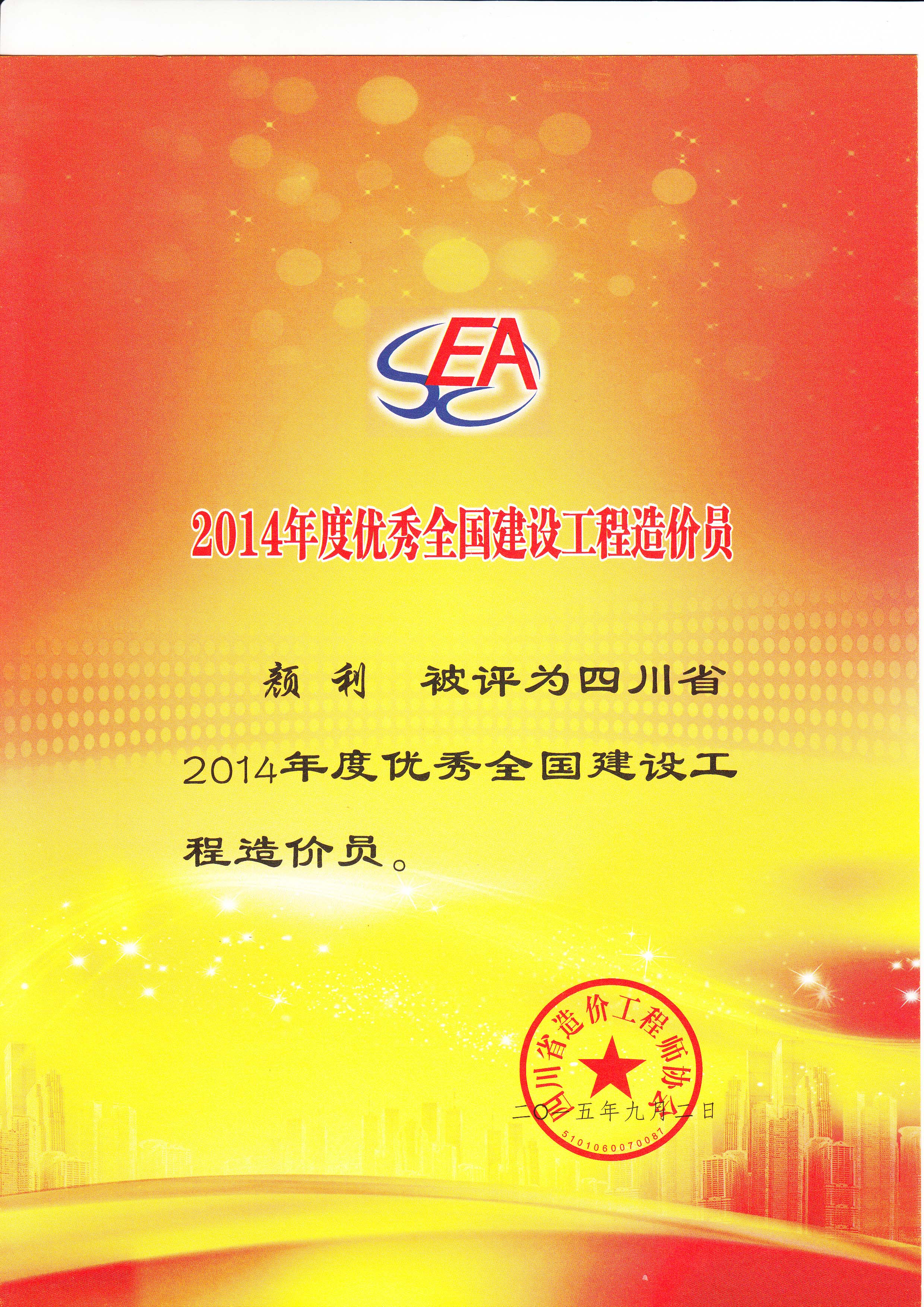 颜利 2014年度优秀个人